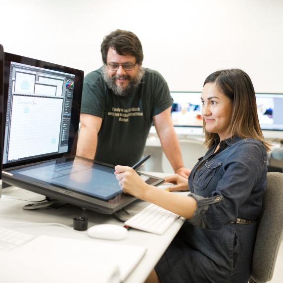 From Adobe Creative Suite to graphic tablets, students work with the industry standard tools.